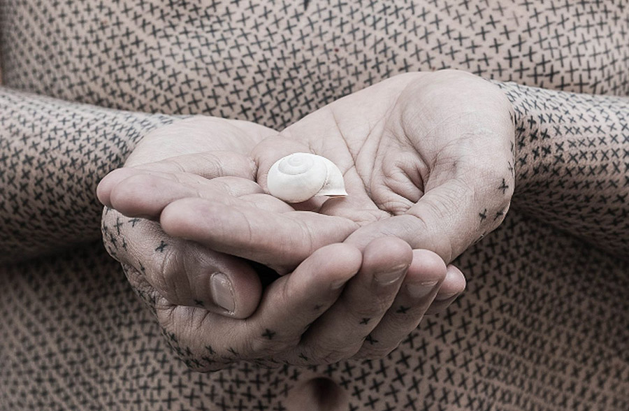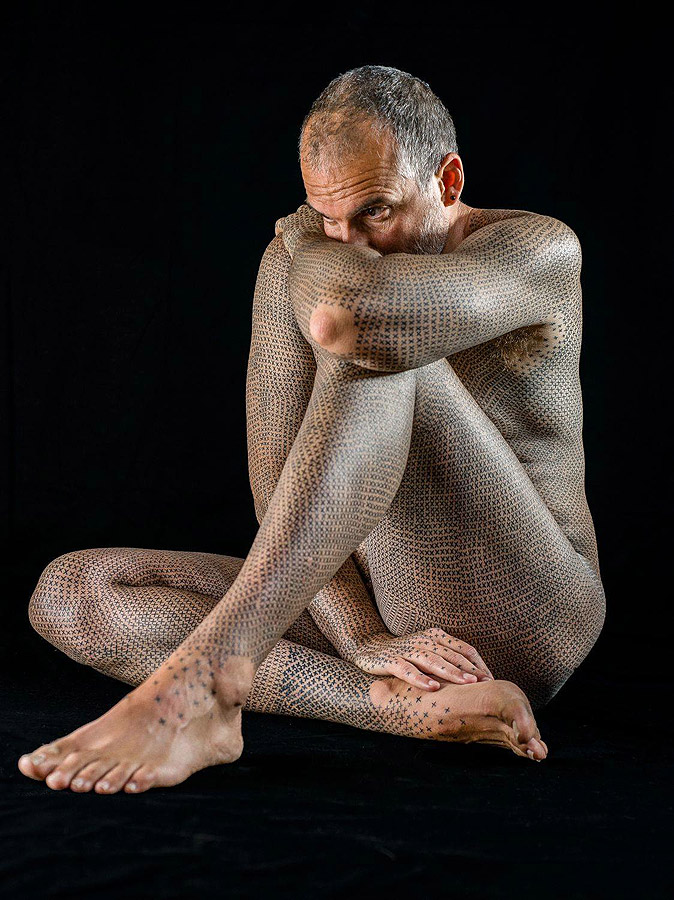 Utilizzare quasi totalmente il proprio corpo come hai fatto tu in una società come quella occidentale è indubbiamente un gesto forte e controverso. Cosa ti ha spinto a scegliere il tatuaggio come mezzo di comunicazione?